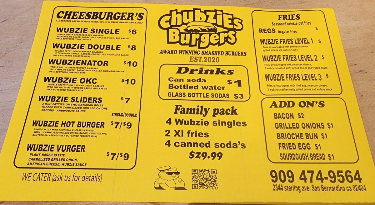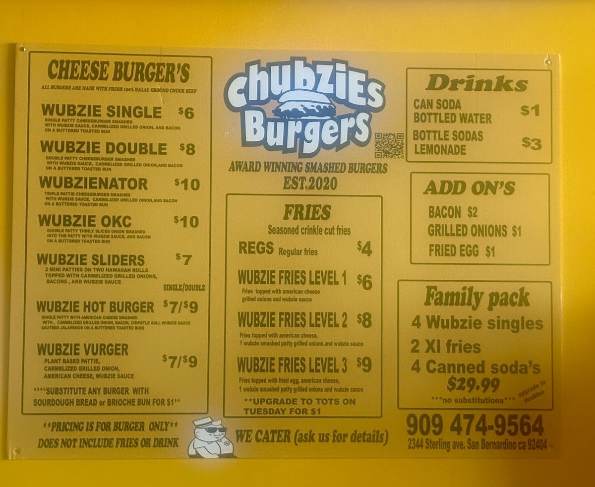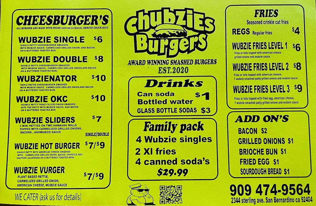 The menu features hearty options like the Wubzie OKC Burger and brunch-inspired choices such as the Brunch Burger or the Wuffin, ideal for mornings or laid-back weekends. For a lighter touch, there are sliders and plant-based alternatives that still deliver on flavor without overwhelming. Complement your meal with classic fries, often enjoyed alongside Wubzie's distinctive sauce, and quench your thirst with soda favorites like Jarritos or iced teas, which fit well with the casual, friendly vibe of the restaurant.